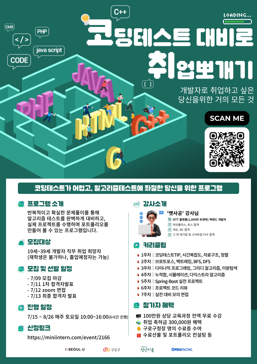 코딩 역량 인증 시험 프로그래머 코딩 역량 인증 시험은 코딩 역량을 객관적으로 측정할 수 있도록 체계적으로 고안된 시험입니다. certi.programmers.co.kr 프로그래머 코딩 역량 인증 시험은 IT 개발자 취업에 관심 있는 분들을 위해 유명 사이트인 프로그래머스에서 진행됩니다. 연산코딩 능력을 객관적으로 측정하기 위해 고안된 인증시험입니다. 프로그래밍 문법과 알고리즘에 대한 기본 능력 평가는 물론 최신 기술까지 다양한 문제로 구성되어 있습니다. 코딩역량인증 시험 성적서는 다양한 곳에서 활용됩니다. 기업 – 채용, 직원평가, 대학 – 졸업/학점인증, 학과평가, 학원 등 – 교육기관 – 취업(코딩시험) 준비과정 등에 활용됩니다. 프로그래머 코딩역량 인증시험의 특징 1. 정확하게 초급부터 고급까지 기업이 요구하는 능력을 평가합니다. 2. 비대면 온라인 시험으로 쉽고 편리하게 시험이 진행됩니다. 3. 자동 채점 시스템을 통해 테스트 완료 후 결과를 빠르게 확인할 수 있습니다. 4. 인증서를 취득한 후, IT 개발자 채용 이력서의 자격 섹션에서 즉시 사용할 수 있습니다. 5. 학력, 연령 등 자격에 제한이 없습니다. 6. 인증시험은 시험난이도에 따라 PCCP, PCCE 2가지 종류가 있습니다. IT개발자 취업에 도움이 되는 프로그래머 코딩역량 인증시험은 시험 난이도에 따라 PCCP와 PCCE 2가지로 구분된다. 이 두 가지 유형의 테스트는 무엇입니까? 차이점이 있는지 알아봅시다. PCCP / PCCE 비교 PCCP(코딩전문역량인증시험) PCCE(코딩필수역량인증시험) 난이도 SW전공자 및 중·고급 프로그래밍 학습자에게 적합 비코딩 전공자 및 초·중급 학습자에게 적합 시험정보 시험시간 – 120분 시험 수수료 – 40,000 자격증 유효기간 – 2년 시험시간 – 50분 응시료 – 30,000원 ​​자격증 유효기간 – 7년 시험 구성 시험 과목 (1개 선택) – Python, Java, JavaScript, C++ 문제 수 – 4문항 문제 유형 – 코드라이팅 시험과목(옵션 1) – Python, Java, C++ 문항수 – 10문항 문항유형 – 빈칸 채우기, 디버깅. 코드 작성 합격 기준 Lv 1: 400 ~ 499 포인트 Lv 2: 500 ~ 599 포인트 Lv 3: 600 ~ 749 포인트 Lv 4: 750 ~ 899 포인트 마스터: 900 ~ 1000 포인트 Lv 1: 400 ~ 599 포인트 Lv 2: 600 ~ 749점 Lv3 : 750 ~ 899점 마스터 : 900 ~ 1000점 자신의 코딩능력과 입사하고 싶은 회사의 선호/요구사항에 따라 시험유형을 선택하시면 됩니다~!! 코딩 역량 인증 시험 과정 IT 개발자 취업에 필요한 코딩 역량 인증 시험 과정을 살펴보겠습니다. Step 1. 사전 테스트 – 시험일 7일 전부터 1일 전까지 사전 테스트를 통해 시험 환경을 체험해 보실 수 있습니다. – 전반적인 PC 환경을 확인하세요. – 공정한 테스트 환경을 위해 모바일 카메라 연결성을 검증합니다. – 규제 ID를 업로드하세요. 2단계. 시험 응시 – 감독관은 Monito 앱을 통해 업로드한 ID를 확인할 것입니다. – 응시자의 주변 상황을 확인하고 시험이 시작됩니다. Step 3. 시험 종료 – 시험 완료 후, 자동 채점을 통해 시험 점수와 시험 합격 여부를 빠르게 확인할 수 있습니다. 기업 이용현황 출처 : 프로그래머 코딩능력 인증시험 홈페이지 코딩능력 인증시험을 활용한 대표적인 기업입니다! 또한, 1,000개가 넘는 IT 개발자 채용 기업에서는 이 자격증을 구직자의 실력을 확인하는 객관적인 지표로 활용하고 있습니다. 출처 : 프로그래머 코딩역량 인증시험 홈페이지 기업 채용 과정에서 활용되는 사례입니다. 코딩역량 자격증 시험은 취업 시뿐만 아니라 입사 후 직원 평가에도 널리 활용된다고 하니, IT 개발자로 취업을 준비하는 분들은 자격증을 취득해 보시는 것도 좋을 것 같습니다. ?! 시험일정 IT개발자 취업에 도움이 되는 코딩역량 인증시험은 정기시험입니다. PCCP 시험은 한 달에 한 번, PCCE 시험은 두 달에 한 번씩 치러집니다. 신청기간을 놓치시면 추가 신청기간이 제공되지 않는다고 합니다. 신청하실 때 주의해주세요! 자세한 시험일정 및 신청일정은 아래 링크 남겨두겠습니다 시험일정 및 신청 | 코딩역량인증시험 프로그래머 코딩역량을 객관적으로 측정할 수 있도록 체계적으로 고안된 코딩역량인증시험 certi.programmers.co.kr IT개발자 취업시 유용한 프로그래머 코딩역량인증시험에 대해 알아봤습니다! IT취업에 관심이 있는 분들께 도움이 되길 바라며 포스팅을 마치겠습니다. IT 개발자 취업에 필요한 교육이 궁금하시다면 아래 링크를 클릭해주세요 구디아 아카데미 ALL JAVA C#.NET NETWORK BIG-DATA 채용(K-Digital 교육) 클라우드 활용 자바 개발자 교육과정(15회) 2024. 02 . 13 ~ 2024. 08. 05 Y.병승 선생님 모집 J.HaYeon (K-Digital Training) 클라우드 활용 Java 개발자 교육 과정 (14회) 2024. 01. 22 ~ 2024. 07. 16 K.JiHun 선생님 선생님 J. 하연 모집 (K-Digital 교육) 클라우드 활용 Java 개발자… www.gdu.co.kr ▼ 온라인 문의 ▼ 구디아 아카데미 커머셜 매니저 실장 옥명경 매니저 www.gdu.co.kr 구디아 아카데미 IT Java 서울시 금천구 가산디지털2로 95 국비아카데미 3층 305호